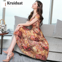 Kruidvat2017夏季新款雪纺连体收腰长款印花连衣裙ZY黄色