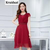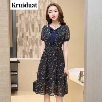 Kruidvat2017夏季新款短袖韩版雪纺中长款连衣裙LJYL