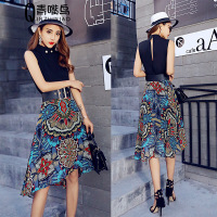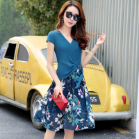 Kruidvat2017夏季新款韩版气质圆领修身收腰雪纺印花连衣裙LJYL