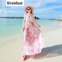 Kruidvat海边度假显瘦沙滩裙挂脖长裙碎花雪纺连衣裙波西米亚女裙WN粉底梅花