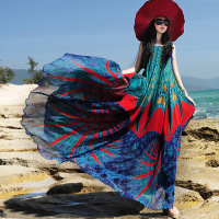 波西米亚夏雪纺度假沙滩裙长裙长裙子吊带裹胸印花连衣裙