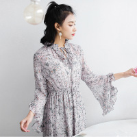 2018春季新款清新七分荷叶袖系带公主裙碎花雪纺连衣裙长裙18133CYLLJQFS