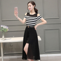 YIBUSHENG新款加大码女装200斤雪纺拼接假两件遮肚中长裙女