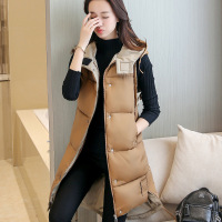 顺崇2017冬季新款修身中长款马甲女韩版时尚无袖羽绒棉服连帽外套
