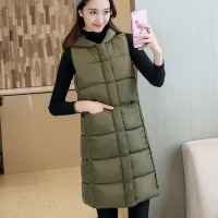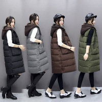 顺崇2017冬季新款修身中长款马甲女韩版时尚无袖羽绒棉服连帽外套