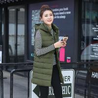 顺崇2017冬季新款羽绒棉马甲女秋冬款中长款韩版活帽加厚百搭棉衣外套