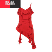 YIBUSHENG气质荷叶边设计感显瘦吊带连衣裙女不规则修身性感短款裙子