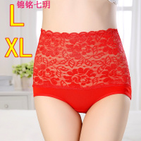 锦铭七玥wish 高腰加大特大码莫代尔蕾丝女内裤红色本命