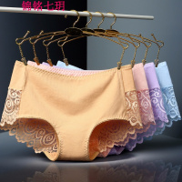 锦铭七玥彩棉内裤女棉性感蕾丝花边舒适透气中腰收腹三角裤