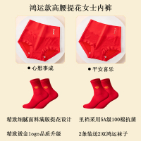 浪莎高腰红内裤女本命年属蛇纯棉中腰大红色内裤袜子组合装女蛇年