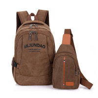 男士双肩包大容量户外旅行背包帆布包休闲背包时尚电脑包学生书包NEW LAKE 黑色-送书包