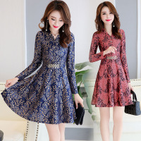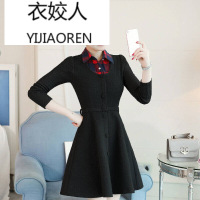 莞馨春秋装女2017新款韩版修身连衣裙长袖印花时尚气质收腰a字裙