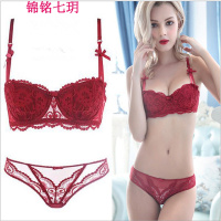 锦铭七玥12半杯罩杯少女士薄款文胸套装性感蕾丝红色女内衣内裤