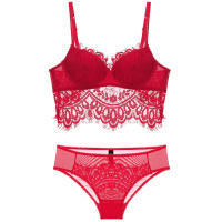 锦铭七玥夏季无钢圈少女胸罩性感红色超薄蕾丝文胸套装女士内衣裤