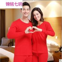 新款男士本命年大红色保暖内衣喜庆秋衣秋裤女套装