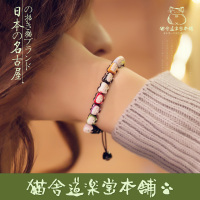 猫舍道乐堂本铺日本正版九福红绳招财猫手链男女情侣天然水晶手串