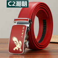 C2潮朝2017男士本命年红腰带男自动扣皮带大红色鸡年女士结婚裤带男加长