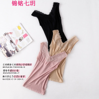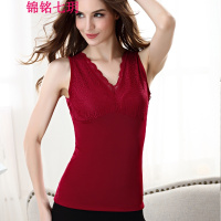 锦铭七玥秋冬V领蕾丝保暖背心加厚加绒打底保暖内衣女托胸塑身美体马甲