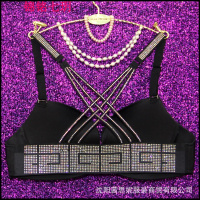 锦铭七玥带钻无钢圈聚拢前扣内衣亮钻性感交叉肩带彩钻美背无痕文胸