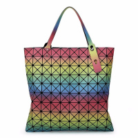 2017新款彩虹包日韩女包几何菱格炫彩变色链条包单肩斜挎包潮