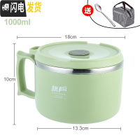 三维工匠304不锈钢保温饭盒圆形1人便当餐盒上班族便携饭缸小学生防烫带盖 北欧绿(1000)+304叉勺+袋子