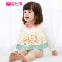 锦铭七玥新款女宝宝纯棉裙式围兜背带交叉式婴儿可调节口水巾吃饭围兜现货