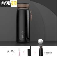 三维工匠保温杯男女大容量便携小巧水杯子儿童学生简约日系可爱ins原宿风 黑色400+杯刷+杯套