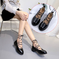 日系软妹ita绑带女鞋森女复古圆头原宿可爱学生单鞋圆头娃娃鞋黑色