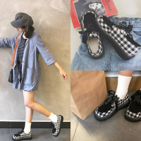 日系软妹复古小清新格子单鞋学院风大头娃娃鞋原宿风丑萌鞋女鞋黑色