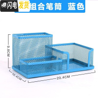 三维工匠笔筒金属彩色多功能网状创意时尚韩国小清新办公收纳盒整理组合笔盒小笔座桌面摆 三格笔筒(雾海蓝)插支笔巧变手机支架