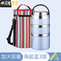 三维工匠304不锈钢保温饭盒上班族多层分隔型多层保温桶饭盒便携学生餐盒 海盐蓝3层[送餐具+保温袋+防水贴]
