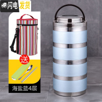 三维工匠304不锈钢保温饭盒桶双层学生便当盒多层家用3层男女日式韩国带盖 (加深底)海盐蓝5层(含袋)