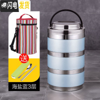 三维工匠304不锈钢保温饭盒桶双层学生便当盒多层家用3层男女日式韩国带盖 海盐蓝3层(含袋)