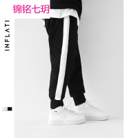 锦铭七玥INF童装|2018春款童装黑白拼接纯棉罗纹松紧运动裤潮牌中大男童裤