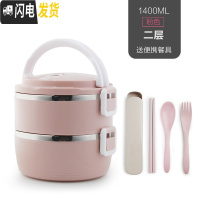 三维工匠手提不锈钢饭盒保温桶分格上班族女便当盒学生大容量便携多层餐盒 粉色2层[送餐具]