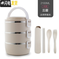 三维工匠手提不锈钢饭盒保温桶分格上班族女便当盒学生大容量便携多层餐盒 米色3层[送餐具]