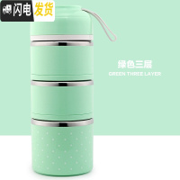 三维工匠手提日式不锈钢饭盒分格成人可爱保温便当盒学生2双层3三多层餐盒 绿色[3层]