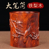 红木手工艺品摆件仿古中式实木雕刻铁梨木笔筒办公桌摆件大笔筒