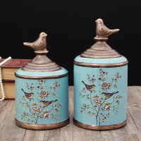 复古美式乡村糖果罐陶瓷罐子摆件装饰储物罐软装收纳罐带盖欧式