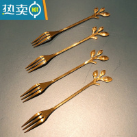 敬平不锈钢水果叉套装创意可爱水果签果插蛋糕叉甜品叉沙拉叉ins北欧 6只金色树叶叉