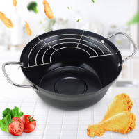家用小炸锅 加厚不粘锅带滤架不锈钢日式天妇罗油炸锅无油烟不粘