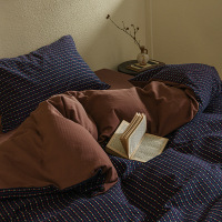 四季款全棉色织提花四件套复古文艺旧风纯棉暗红色床单床上用品