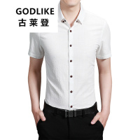 古莱登2017夏季新品男士短袖衬衫韩版商务休闲套装白衬衣职业工装寸衫修身工作服