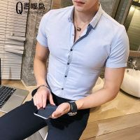 夏季新款青年纯色短袖衬衫男韩版修身免烫丝光棉半袖衬衣男加大码