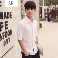 尊首新款20172017夏季潮流男装短袖衬衣男士韩版修身纯色短袖衬衫