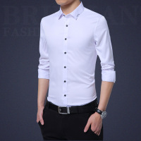 2017夏季韩版修身男士白衬衣男式长袖衬衫纯色免烫寸衫潮流