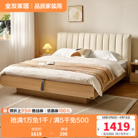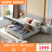 全友家居现代轻奢储物双人床 软靠包欧皮实木框架大床 置物收纳卧室家具高箱床