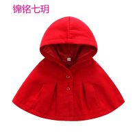 锦铭七玥秋冬婴儿斗篷厚款红色连帽毛呢披风女宝宝外出披肩外套