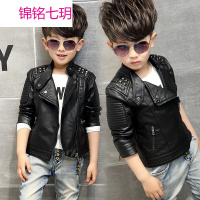 锦铭七玥童装男童皮衣外套2017新款pu加绒加厚韩版潮宝宝儿童秋冬夹克上衣