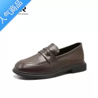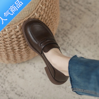 SUNTEK软~棕色乐福鞋女2023新款春秋小皮鞋英伦风平底一脚蹬jk单鞋